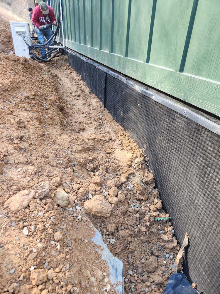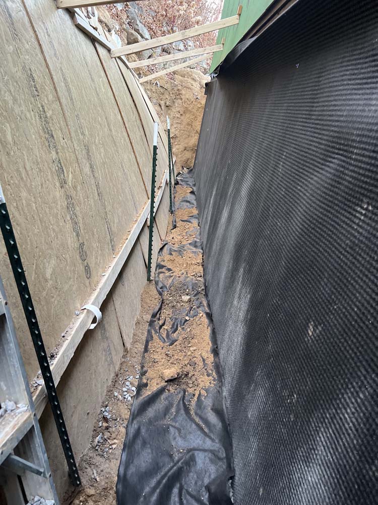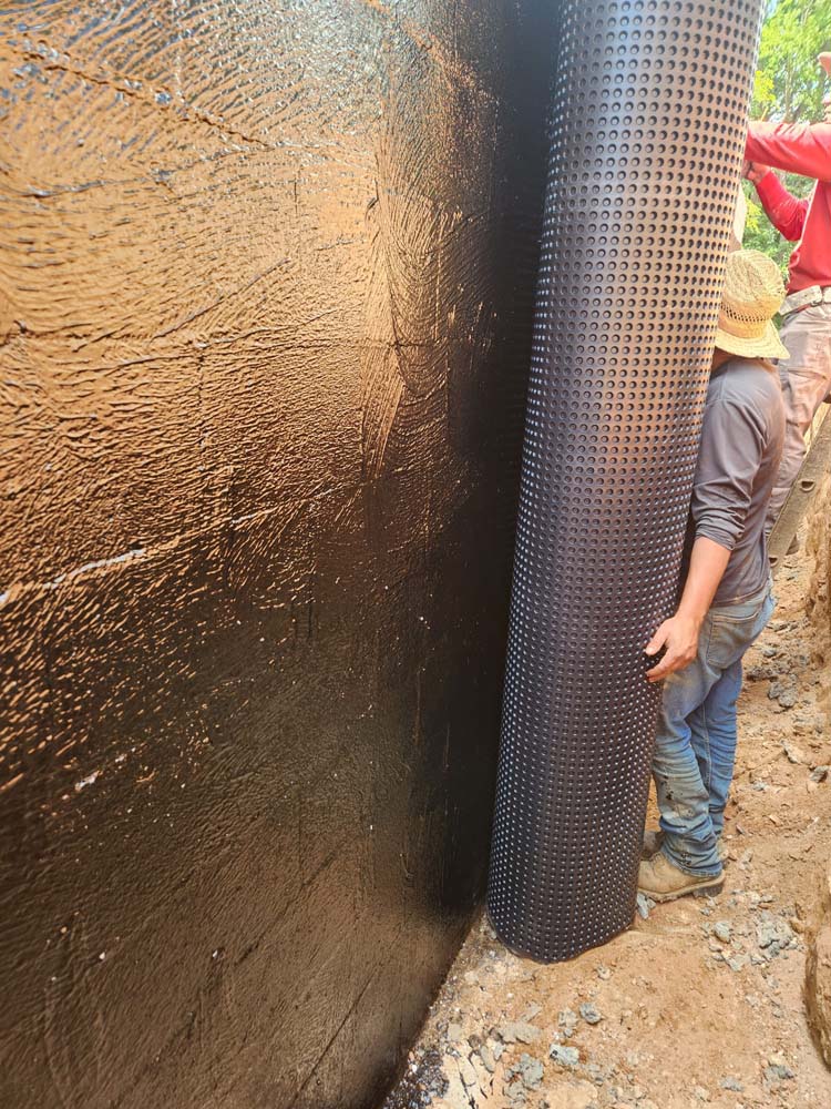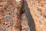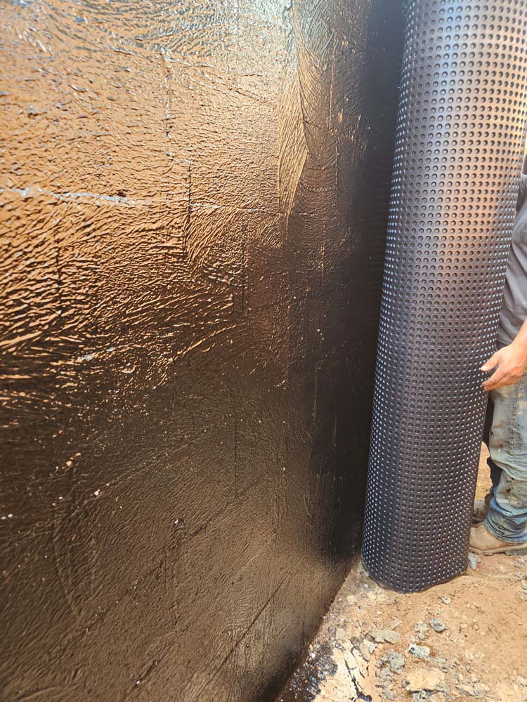 - Install an exterior waterproofing membrane or coating to the foundation